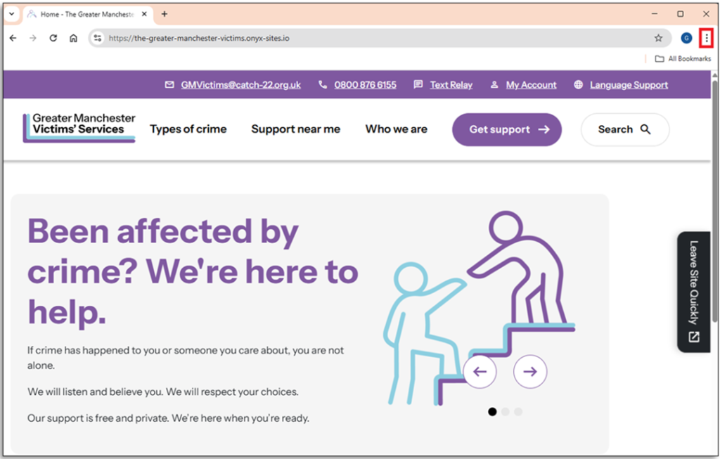 Step 1: ‘Click’ the three horizontal lines to the right of the web browser page.