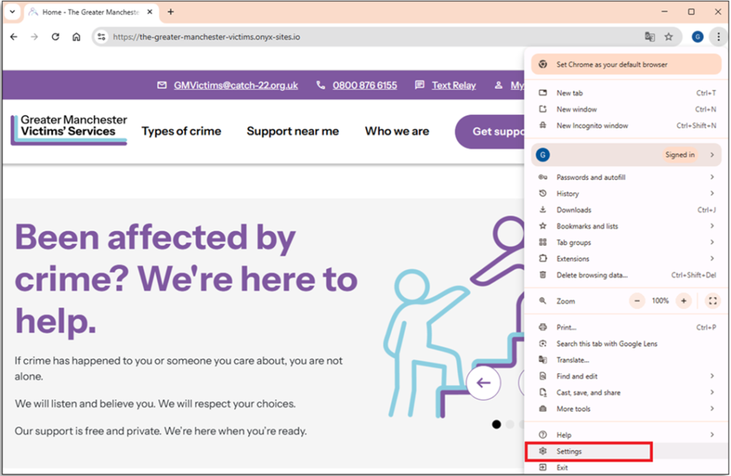 Copy the link https://gmvictimsservices.org and paste it into your web browser.