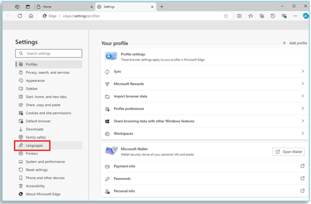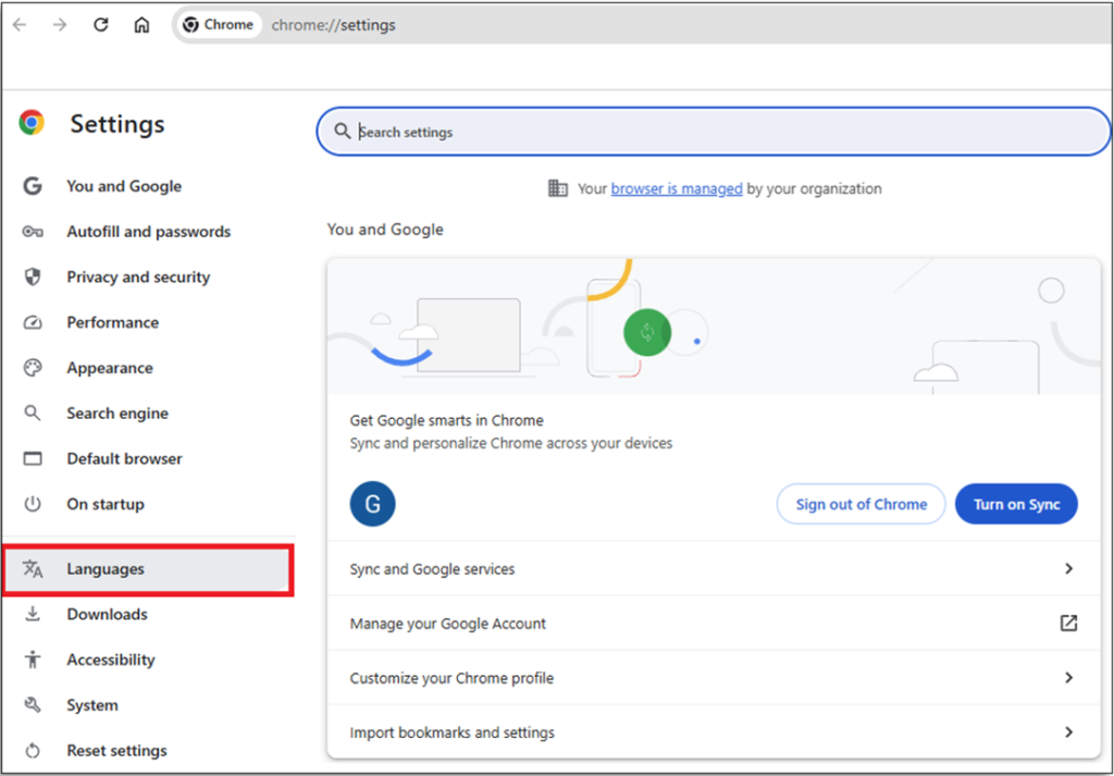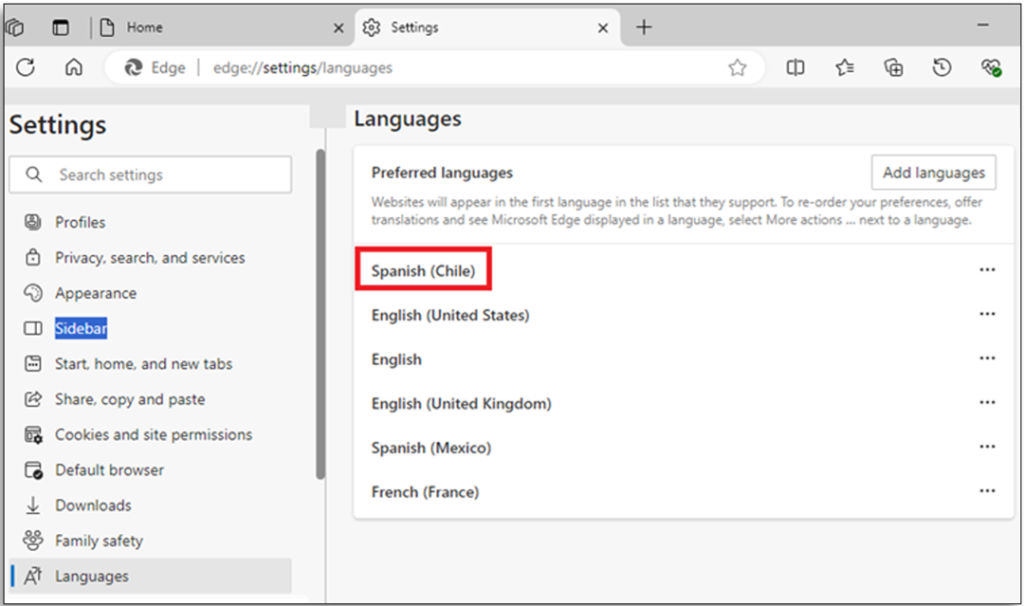 Step 3: On the left side of the page in the setting sidebar ‘Click’ Languages.