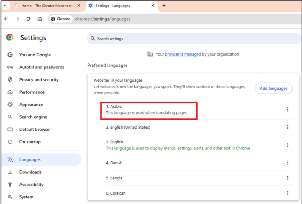 Step 9: The preferred language will be at the top of the list. ‘Close’ the browser to launch the update.