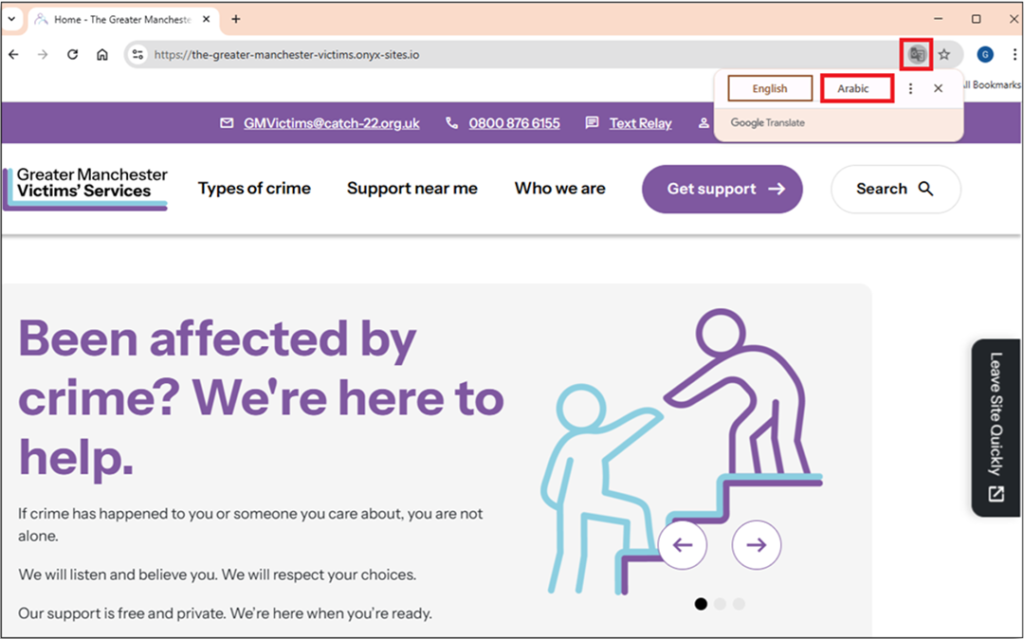 Step 10: Note: If the page has not translated repeat the steps. The site will display the translated page.