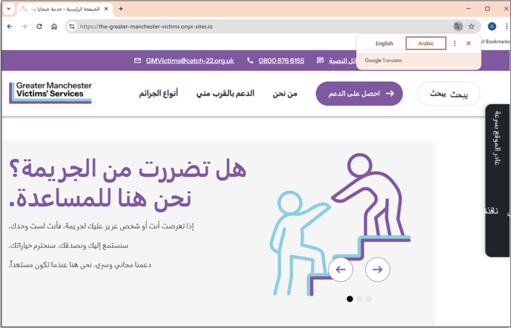 Step 2: The site will display the translated page.