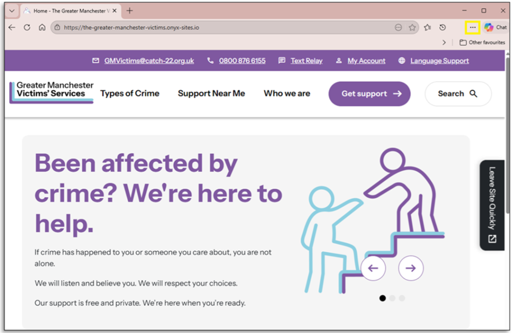 Step 1: ‘Click’ the three dots to the right of the web browser screen.