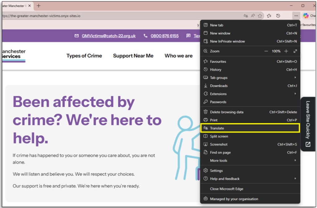 Step 1: Right click on the page and select ‘Translate to’: