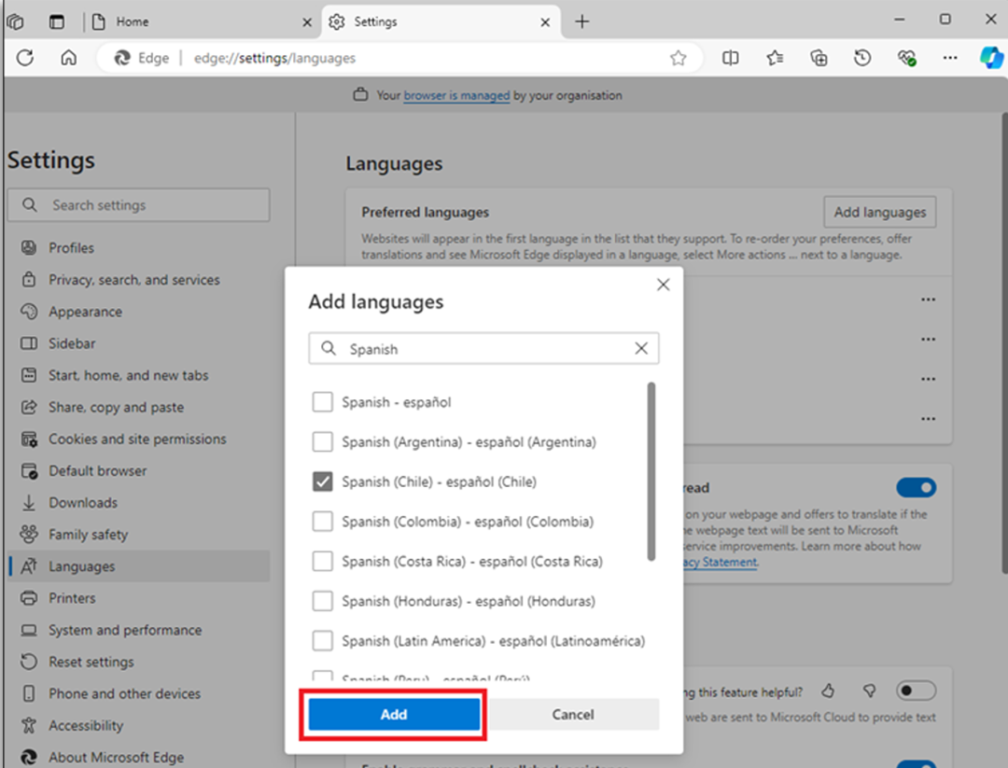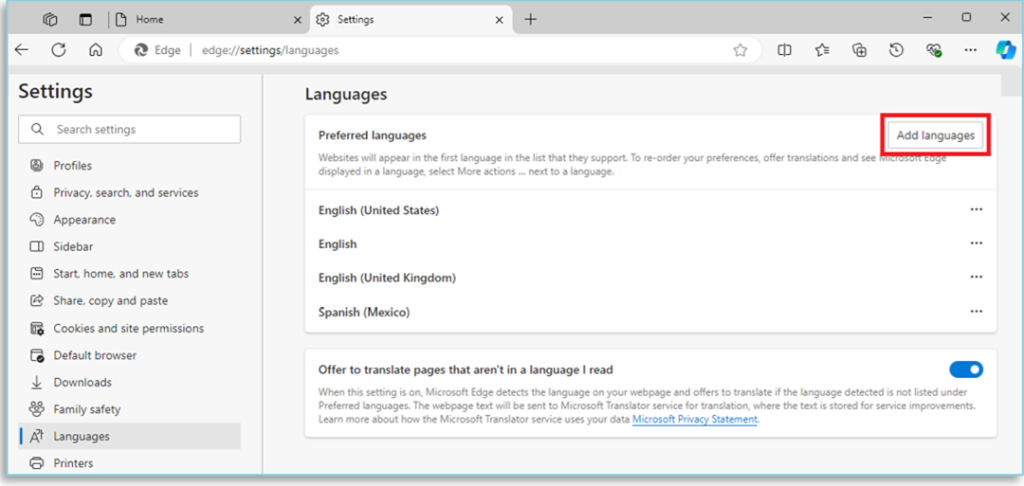 Step 4: On the top right of the page ‘Click’ ‘Add Languages’.
