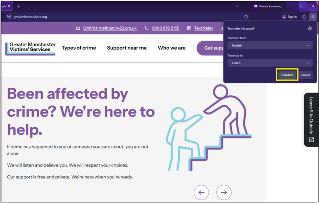 Step 7: If the page does not translate, ‘Click’ the ‘translate button’